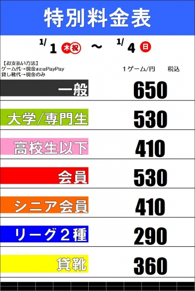 (1/1から1/4はご予約不可とし先着順にてご案内させていただきます)